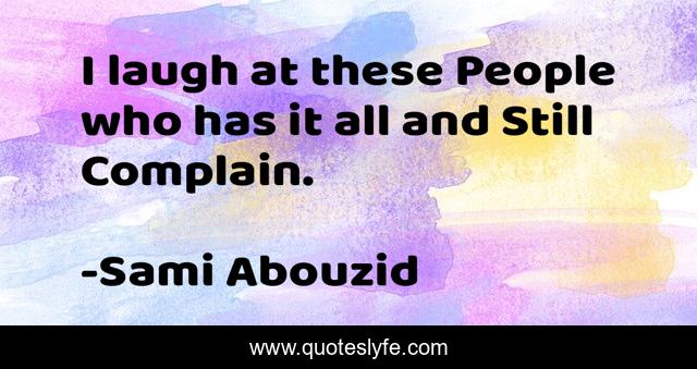 This page presents the quote "I laugh at these People who has it all and Still Complain.". Author of this quote is Sami Abouzid. .