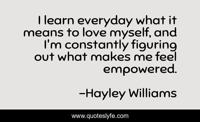 This page presents the quote "I learn everyday what it means to love myself, and I'm constantly figuring out what makes me feel empowered.". Author of this quote is Hayley Williams. .