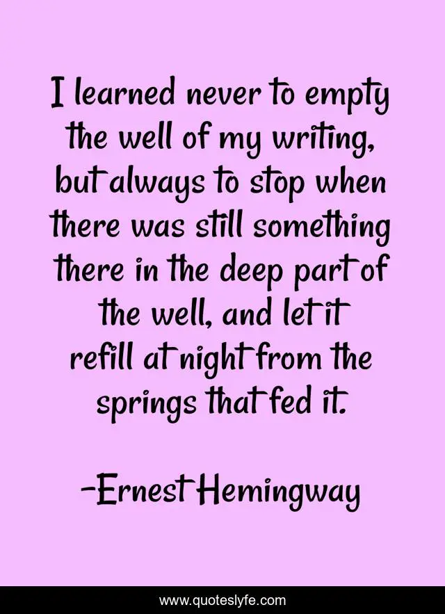 "Ernest Hemingway Quotes." Quoteslyfe.com, 2025. Sat. 06 Dec. 2025. <https://www.quoteslyfe.com/quote/I-learned-never-to-empty-the-well-288278>.