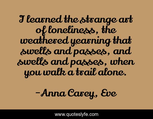This page presents the quote "I learned the strange art of loneliness, the weathered yearning that swells and passes, and swells and passes, when you walk a trail alone.". Author of this quote is Anna Carey, Eve. .