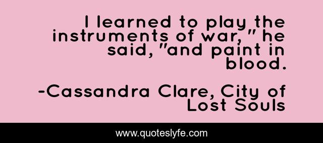 This page presents the quote "I learned to play the instruments of war, " he said, "and paint in blood.". Author of this quote is Cassandra Clare, City of Lost Souls. This quote is about instruments, sebastian-jonathan, war, paint, blood,.