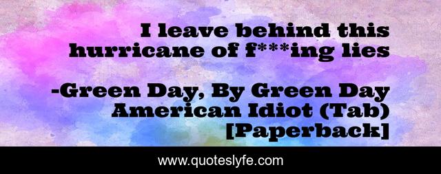 This page presents the quote "I leave behind this hurricane of f***ing lies". Author of this quote is Green Day, By Green Day American Idiot (Tab) [Paperback]. .