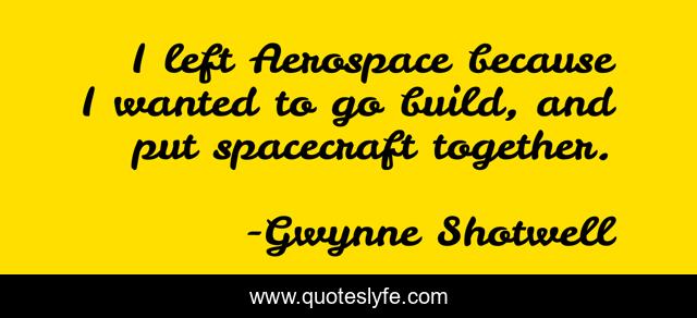 "Gwynne Shotwell Quotes." Quoteslyfe.com, 2025. Sat. 06 Dec. 2025. <https://www.quoteslyfe.com/quote/I-left-Aerospace-because-I-wanted-to-289699>.