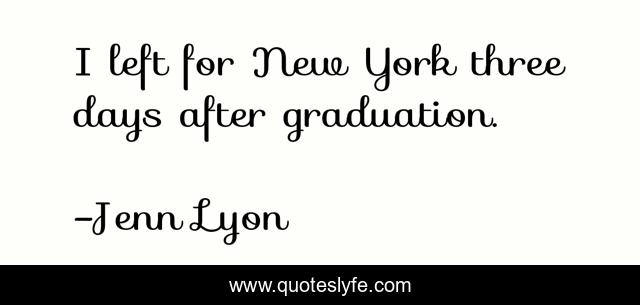 This page presents the quote "I left for New York three days after graduation.". Author of this quote is Jenn Lyon. This quote is about new, new york, three,.
