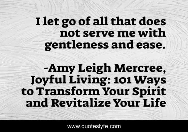 This page presents the quote "I let go of all that does not serve me with gentleness and ease.". Author of this quote is Amy Leigh Mercree, Joyful Living: 101 Ways to Transform Your Spirit and Revitalize Your Life. This quote is about quotes-de-la-vida, amy-leigh-mercree, quote-of-the-day, quotes-tumblr, inspirational, quote-about-life, enthusiasm, quotes-twitter, quote-of-the-week,.