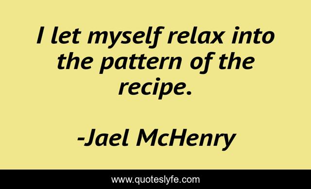 This page presents the quote "I let myself relax into the pattern of the recipe.". Author of this quote is Jael McHenry. This quote is about grief, cooking, relaxation,.