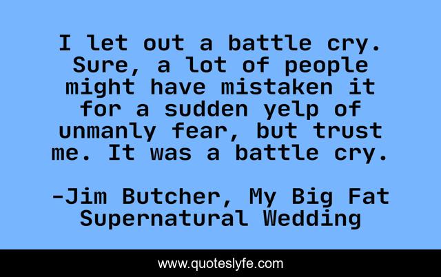 "Jim Butcher, My Big Fat Supernatural Wedding Quotes." Quoteslyfe.com, 2025. Fri. 05 Dec. 2025. <https://www.quoteslyfe.com/quote/I-let-out-a-battle-cry-Sure-6687>.