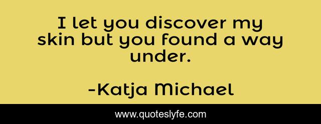 "Katja Michael Quotes." Quoteslyfe.com, 2025. Tue. 09 Dec. 2025. <https://www.quoteslyfe.com/quote/I-let-you-discover-my-skin-but-171794>.