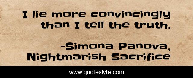 "Simona Panova, Nightmarish Sacrifice Quotes." Quoteslyfe.com, 2025. Sat. 13 Dec. 2025. <https://www.quoteslyfe.com/quote/I-lie-more-convincingly-than-I-tell-148865>.