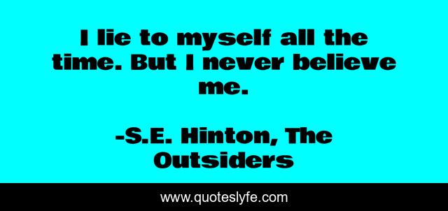 "S.E. Hinton, The Outsiders Quotes." Quoteslyfe.com, 2025. Fri. 05 Dec. 2025. <https://www.quoteslyfe.com/quote/I-lie-to-myself-all-the-time-8915>.