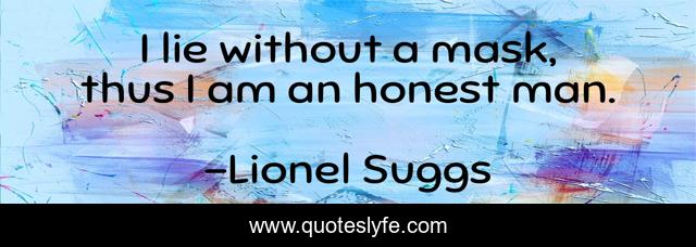 This page presents the quote "I lie without a mask, thus I am an honest man.". Author of this quote is Lionel Suggs. .