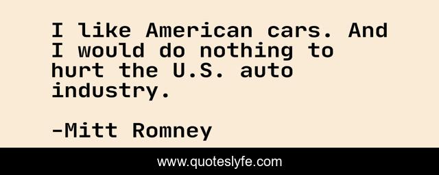 This page presents the quote "I like American cars. And I would do nothing to hurt the U.S. auto industry.". Author of this quote is Mitt Romney. This quote is about nothing, american, hurt,.