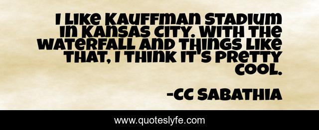 This page presents the quote "I like Kauffman Stadium in Kansas City. With the waterfall and things like that, I think it's pretty cool.". Author of this quote is CC Sabathia. This quote is about city, waterfall, think,.