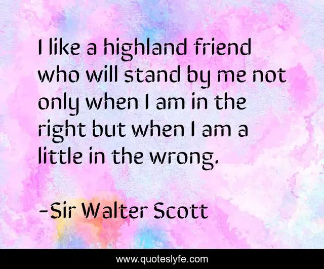 This page presents the quote "I like a highland friend who will stand by me not only when I am in the right but when I am a little in the wrong.". Author of this quote is Sir Walter Scott. .