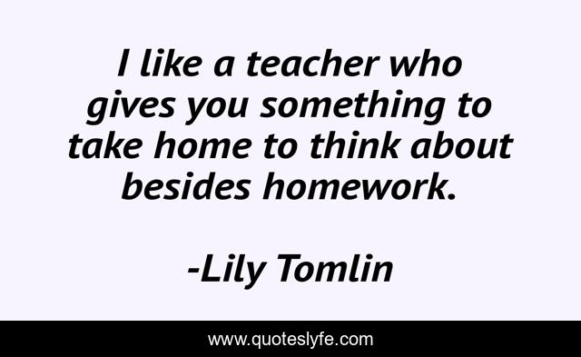 This page presents the quote "I like a teacher who gives you something to take home to think about besides homework.". Author of this quote is Lily Tomlin. This quote is about home, think,.