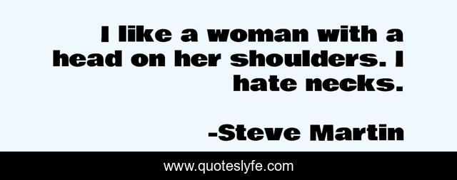 This page presents the quote "I like a woman with a head on her shoulders. I hate necks.". Author of this quote is Steve Martin. .