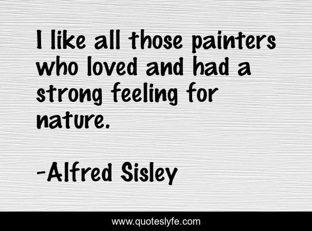 This page presents the quote "I like all those painters who loved and had a strong feeling for nature.". Author of this quote is Alfred Sisley. This quote is about loved, feeling, strong,.