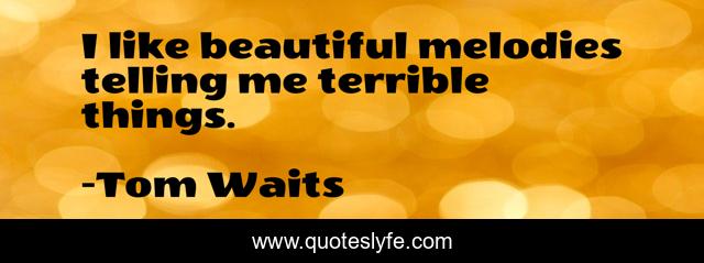 "Tom Waits Quotes." Quoteslyfe.com, 2025. Tue. 09 Dec. 2025. <https://www.quoteslyfe.com/quote/I-like-beautiful-melodies-telling-me-terrible-78565>.
