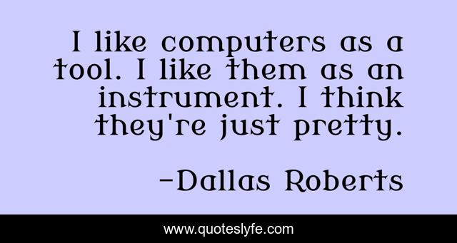 This page presents the quote "I like computers as a tool. I like them as an instrument. I think they're just pretty.". Author of this quote is Dallas Roberts. This quote is about tool, think, pretty,.