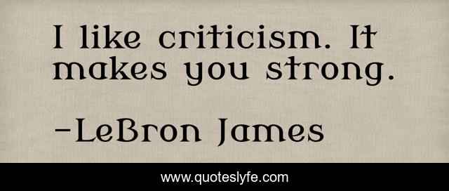 This page presents the quote "I like criticism. It makes you strong.". Author of this quote is LeBron James. This quote is about criticism, strong,.