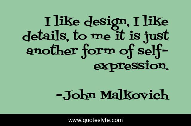 This page presents the quote "I like design, I like details, to me it is just another form of self-expression.". Author of this quote is John Malkovich. This quote is about me, details, like,.