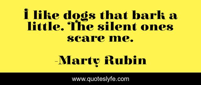 This page presents the quote "I like dogs that bark a little. The silent ones scare me.". Author of this quote is Marty Rubin. This quote is about anger, expressiveness, silence, secrecy,.