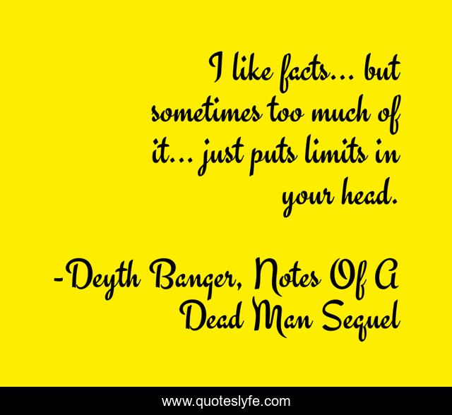 "Deyth Banger, Notes Of A Dead Man Sequel Quotes." Quoteslyfe.com, 2025. Sat. 06 Dec. 2025. <https://www.quoteslyfe.com/quote/I-like-facts-but-sometimes-too-much-254549>.