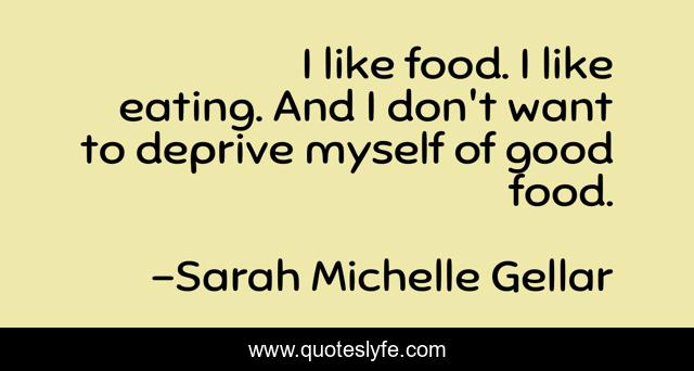 This page presents the quote "I like food. I like eating. And I don't want to deprive myself of good food.". Author of this quote is Sarah Michelle Gellar. This quote is about myself, good, good food,.