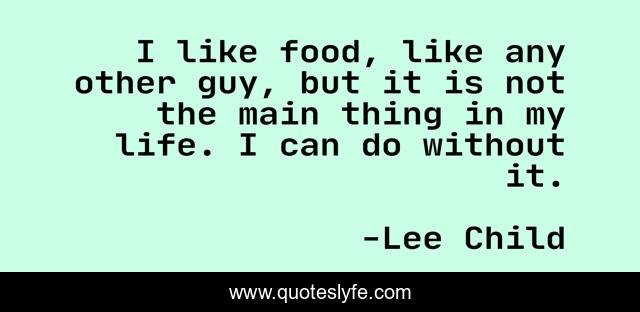 This page presents the quote "I like food, like any other guy, but it is not the main thing in my life. I can do without it.". Author of this quote is Lee Child. This quote is about life, my life, i can,.