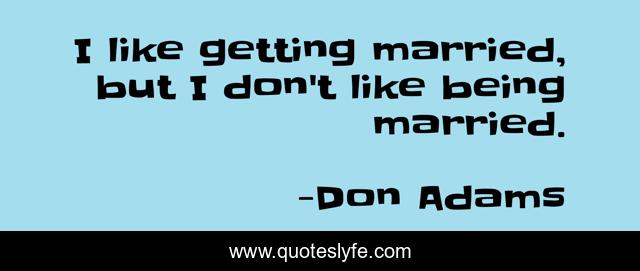 This page presents the quote "I like getting married, but I don't like being married.". Author of this quote is Don Adams. This quote is about getting married, married,.