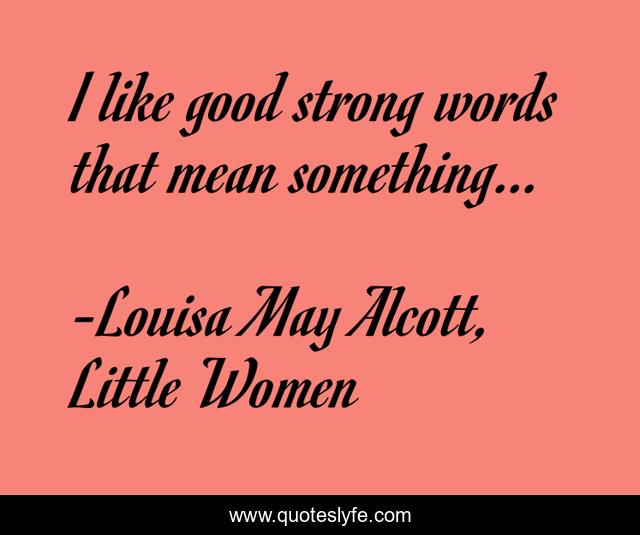 "Louisa May Alcott, Little Women Quotes." Quoteslyfe.com, 2025. Sat. 06 Dec. 2025. <https://www.quoteslyfe.com/quote/I-like-good-strong-words-that-mean-112449>.