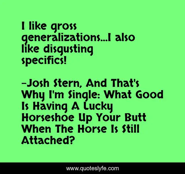 "Josh Stern, And That's Why I'm Single: What Good Is Having A Lucky Horseshoe Up Your Butt When The Horse Is Still Attached? Quotes." Quoteslyfe.com, 2025. Sat. 06 Dec. 2025. <https://www.quoteslyfe.com/quote/I-like-gross-generalizations-I-also-like-205777>.