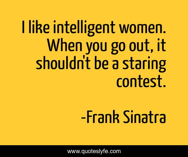 This page presents the quote "I like intelligent women. When you go out, it shouldn't be a staring contest.". Author of this quote is Frank Sinatra. This quote is about intelligent, staring,.