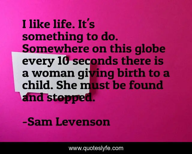This page presents the quote "I like life. It's something to do. Somewhere on this globe every 10 seconds there is a woman giving birth to a child. She must be found and stopped.". Author of this quote is Sam Levenson. .