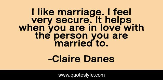 This page presents the quote "I like marriage. I feel very secure. It helps when you are in love with the person you are married to.". Author of this quote is Claire Danes. This quote is about person, love, affection,.