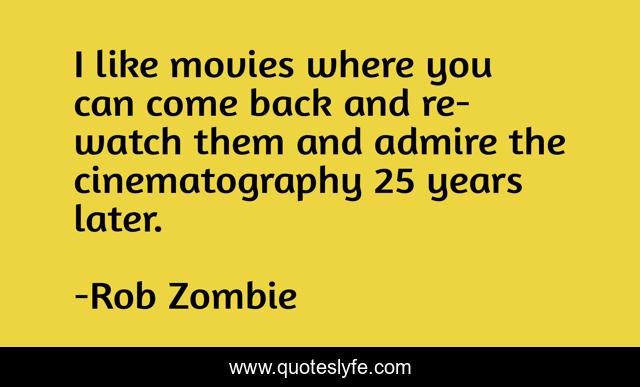 This page presents the quote "I like movies where you can come back and re-watch them and admire the cinematography 25 years later.". Author of this quote is Rob Zombie. This quote is about admire, years,.