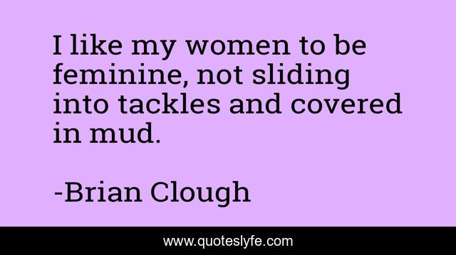 This page presents the quote "I like my women to be feminine, not sliding into tackles and covered in mud.". Author of this quote is Brian Clough. This quote is about mud, like, feminine,.