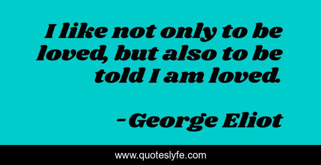 This page presents the quote "I like not only to be loved, but also to be told I am loved.". Author of this quote is George Eliot. This quote is about loved, like,.