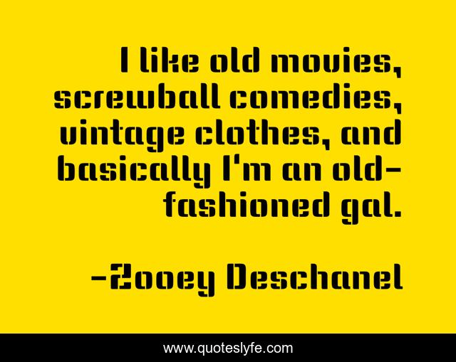 This page presents the quote "I like old movies, screwball comedies, vintage clothes, and basically I'm an old-fashioned gal.". Author of this quote is Zooey Deschanel. This quote is about vintage, clothes,.