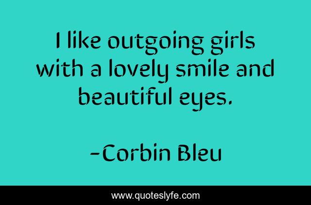This page presents the quote "I like outgoing girls with a lovely smile and beautiful eyes.". Author of this quote is Corbin Bleu. This quote is about beautiful, eyes, lovely,.