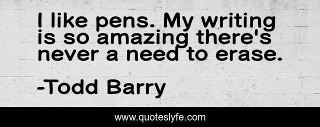 This page presents the quote "I like pens. My writing is so amazing there's never a need to erase.". Author of this quote is Todd Barry. This quote is about need, writing,.