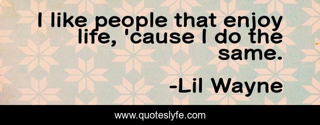 This page presents the quote "I like people that enjoy life, 'cause I do the same.". Author of this quote is Lil Wayne. This quote is about enjoy, enjoy life, people,.