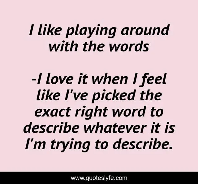 This page presents the quote "I like playing around with the words". Author of this quote is I love it when I feel like I've picked the exact right word to describe whatever it is I'm trying to describe.. .