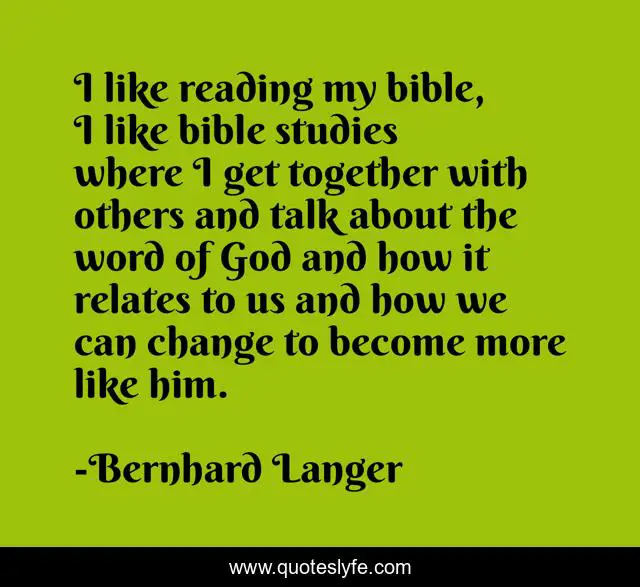 This page presents the quote "I like reading my bible, I like bible studies where I get together with others and talk about the word of God and how it relates to us and how we can change to become more like him.". Author of this quote is Bernhard Langer. This quote is about god, reading, together,.