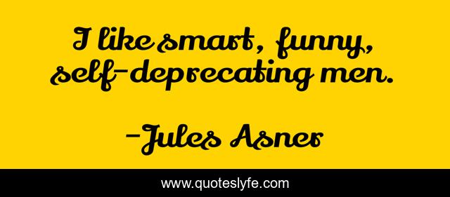 This page presents the quote "I like smart, funny, self-deprecating men.". Author of this quote is Jules Asner. This quote is about self-deprecating, men, smart,.