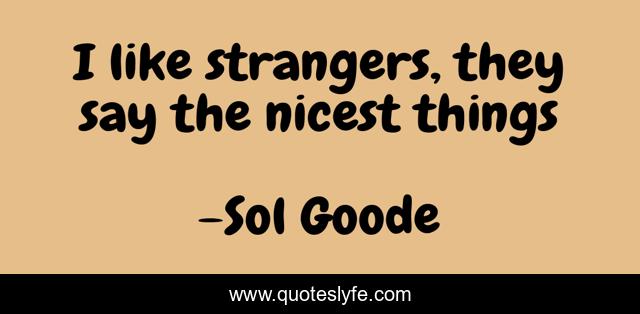 "Sol Goode Quotes." Quoteslyfe.com, 2025. Sat. 06 Dec. 2025. <https://www.quoteslyfe.com/quote/I-like-strangers-they-say-the-nicest-127010>.