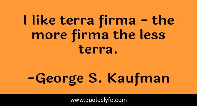 "George S. Kaufman Quotes." Quoteslyfe.com, 2025. Fri. 05 Dec. 2025. <https://www.quoteslyfe.com/quote/I-like-terra-firma-the-more-firma-278137>.
