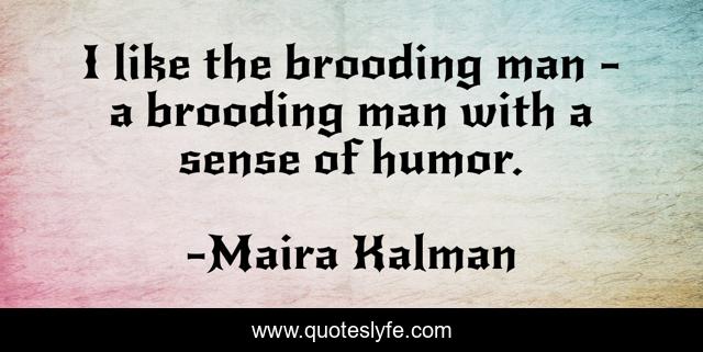 This page presents the quote "I like the brooding man - a brooding man with a sense of humor.". Author of this quote is Maira Kalman. This quote is about sense of humor, man, sense,.