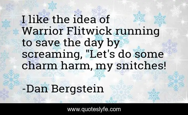 This page presents the quote "I like the idea of Warrior Flitwick running to save the day by screaming, "Let's do some charm harm, my snitches!". Author of this quote is Dan Bergstein. .
