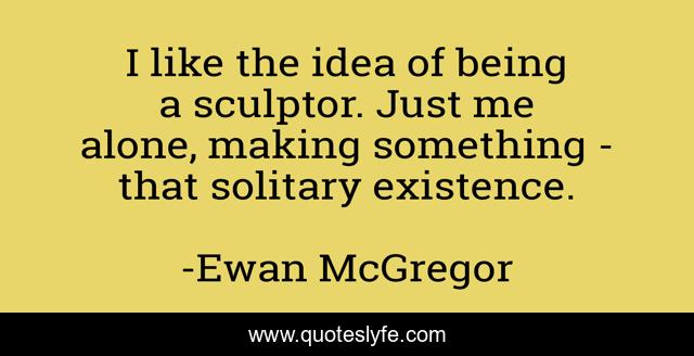 This page presents the quote "I like the idea of being a sculptor. Just me alone, making something - that solitary existence.". Author of this quote is Ewan McGregor. This quote is about me, existence, idea,.